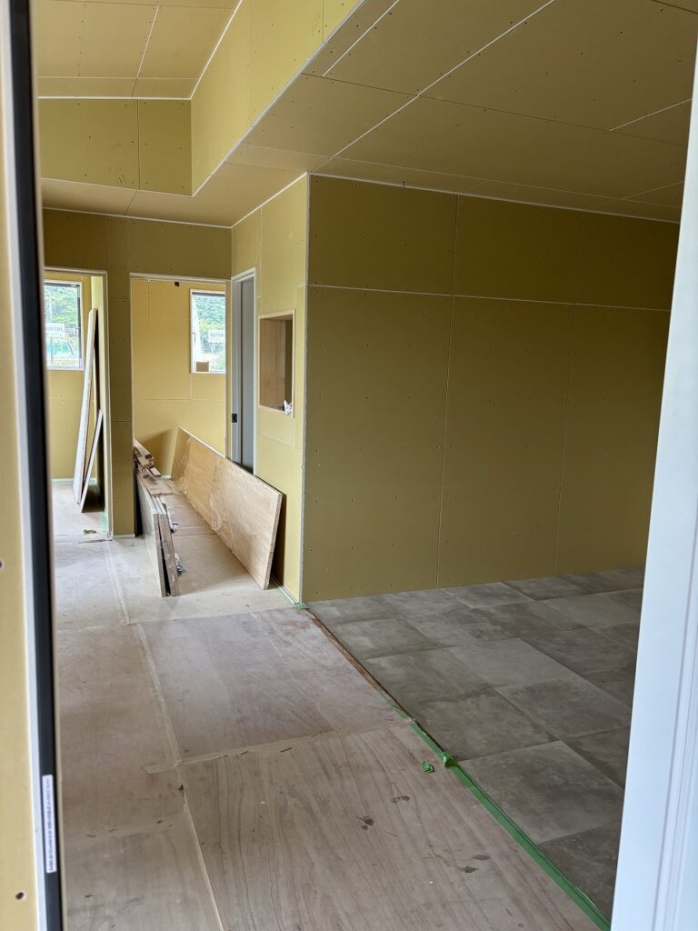 室内も石膏ボードが施工されてこれから内装工事になります。