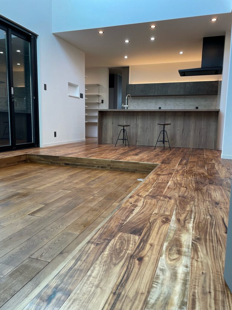 リビングは吹き抜けとピットフロアにより、さらに開放感的でお洒落な空間になりました。